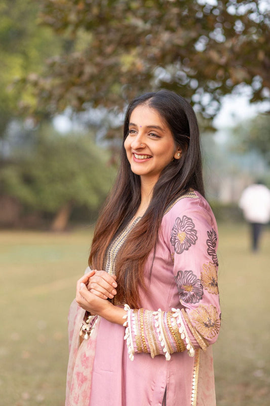 Lilac Heavy Sleeve Embroidery Suit with Dual Tone Dyed Organza Dupatta