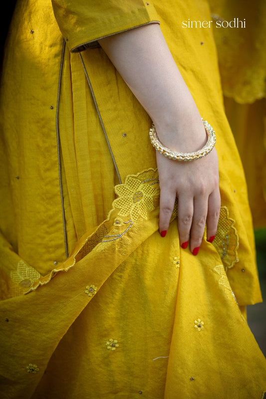 Mustard Deer Neck Embroidery Sharara Outfit