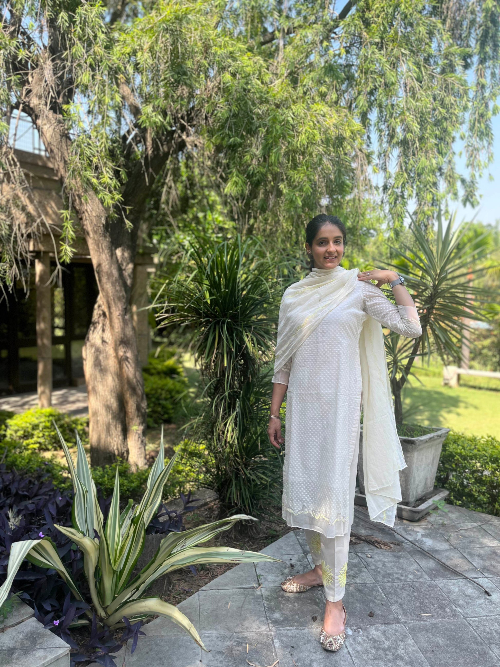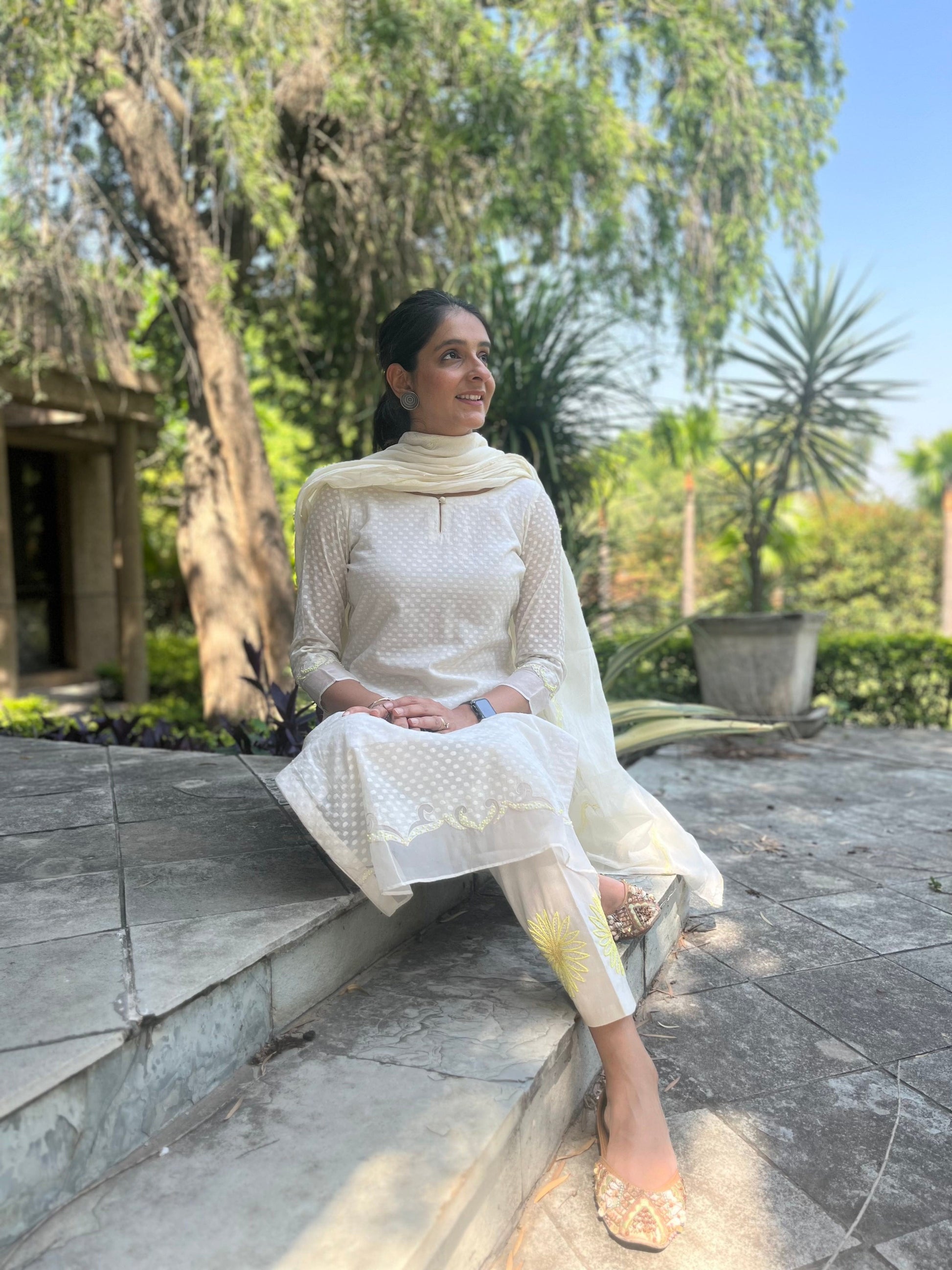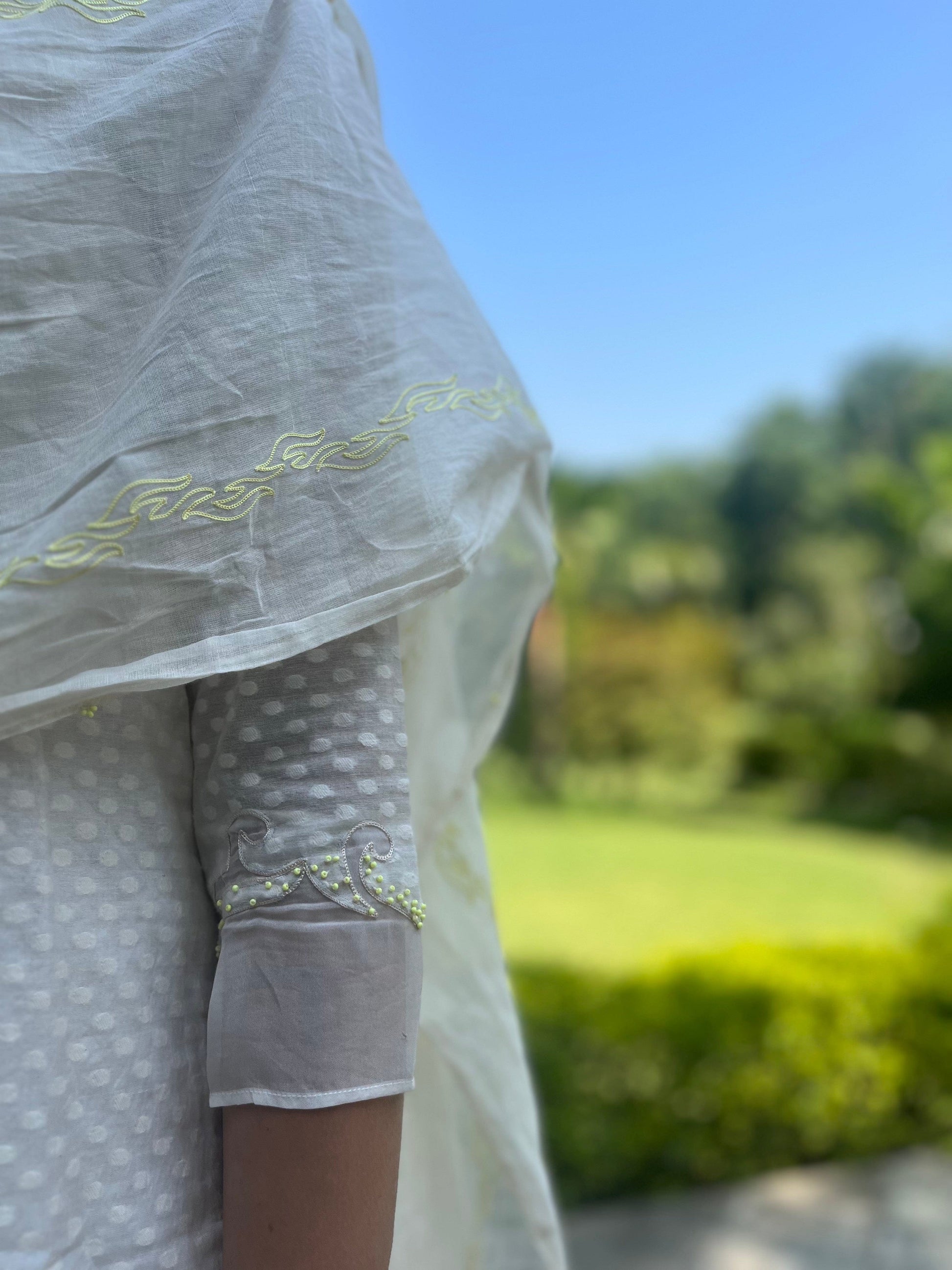 Cotton mul dupatta with resham embroidery detailing