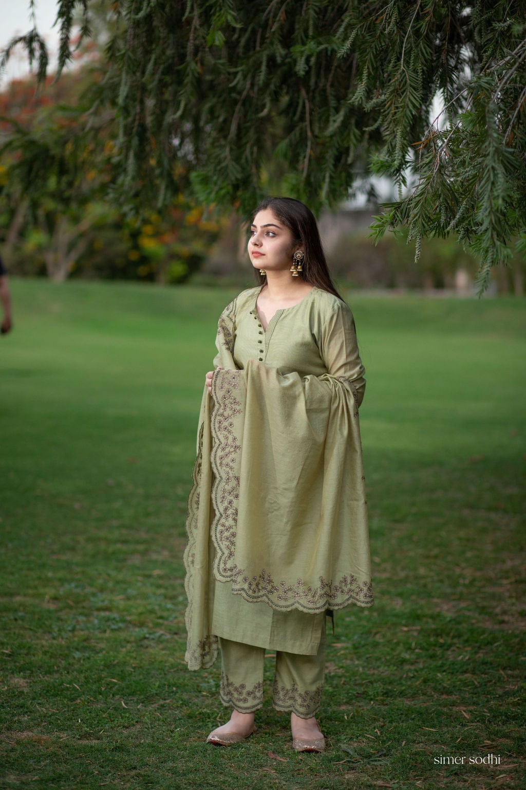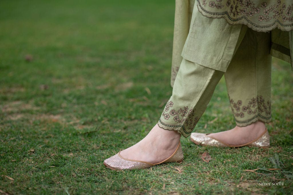 Green Scalloped Embroidery Outfit