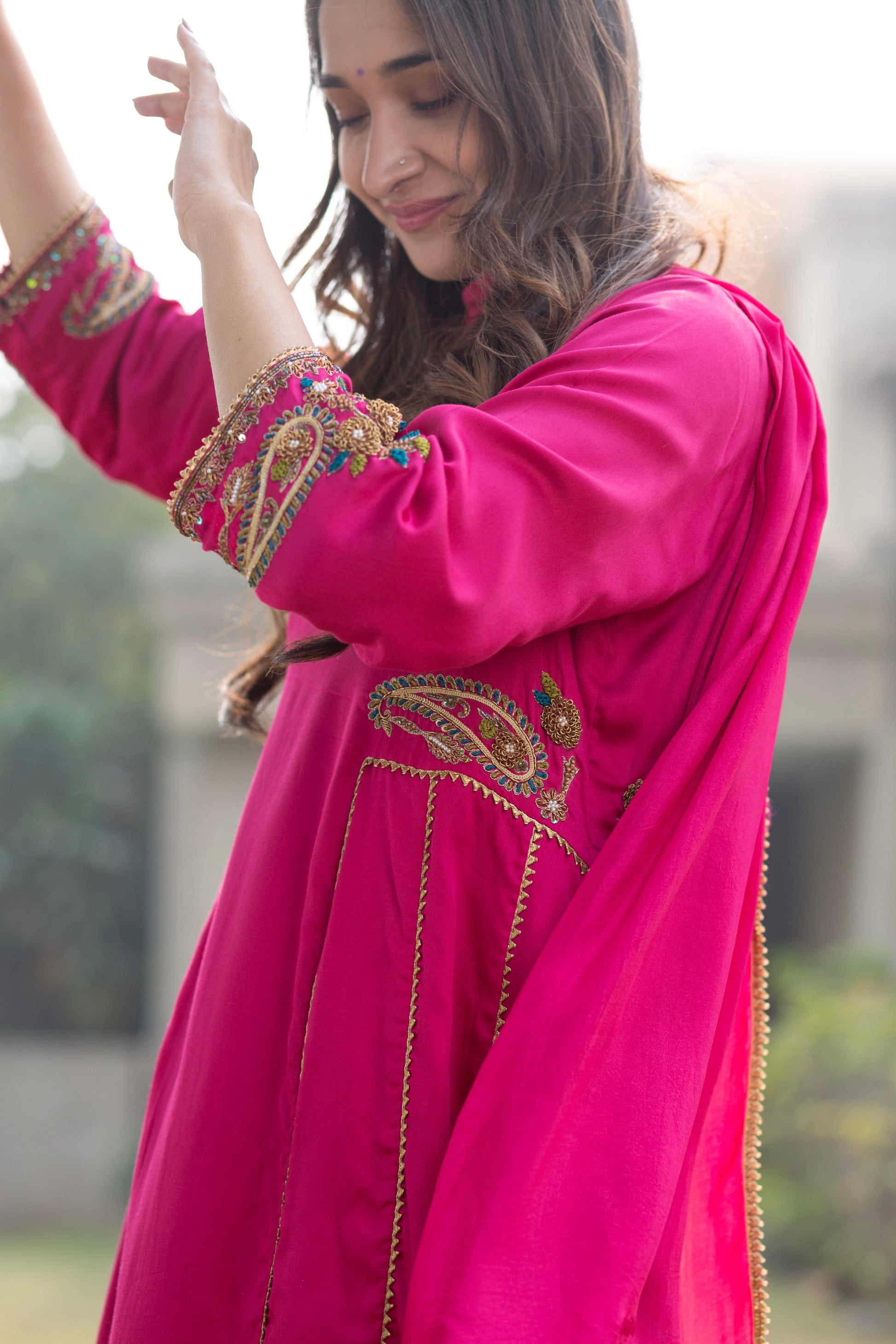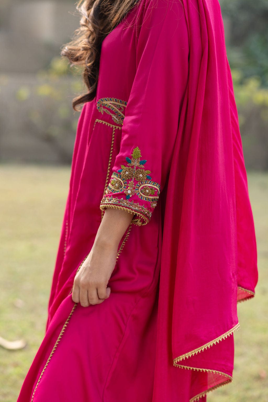 Kalidaar crepe kurta with dabka waist, sleeves and neck embroidery