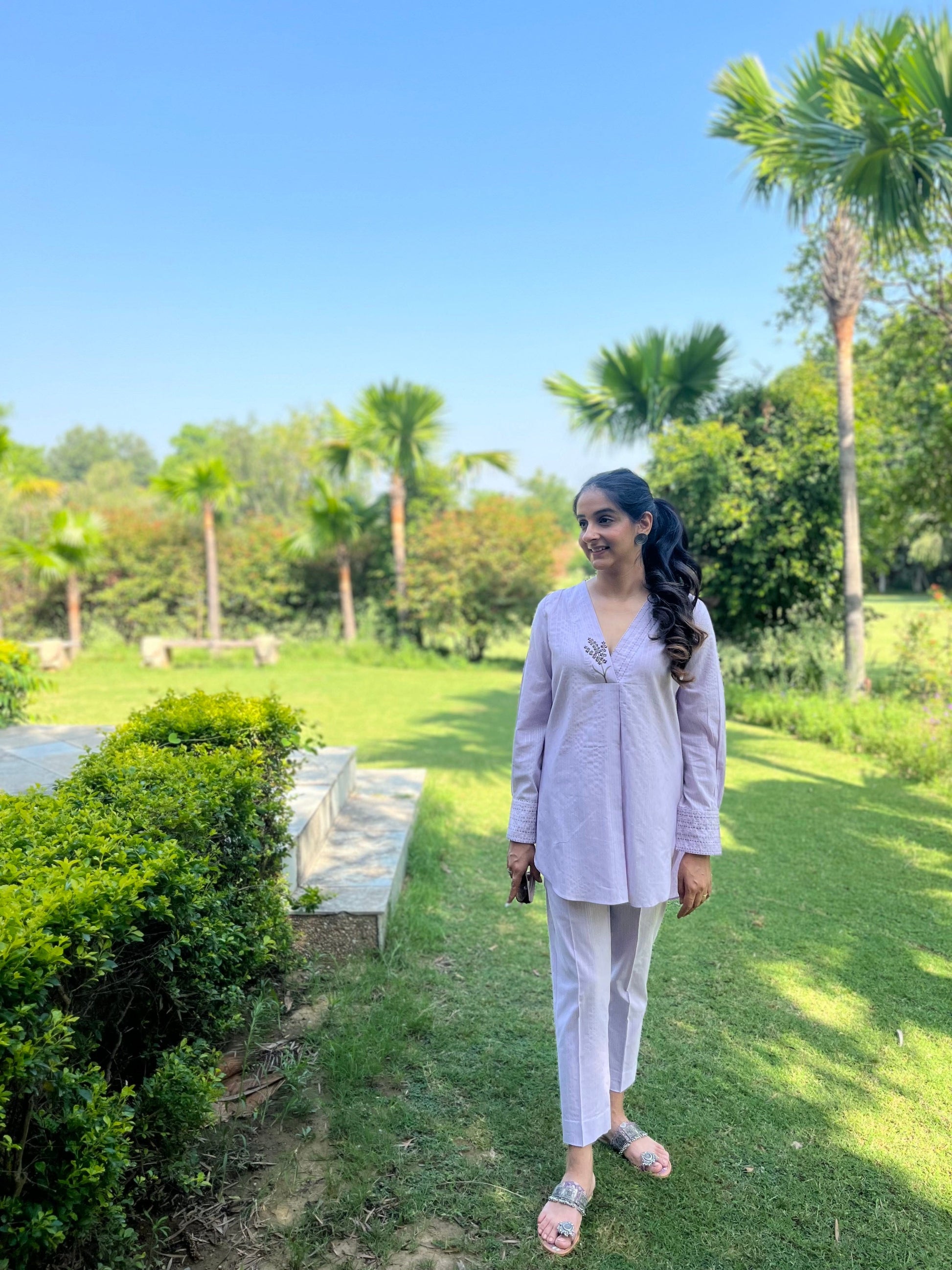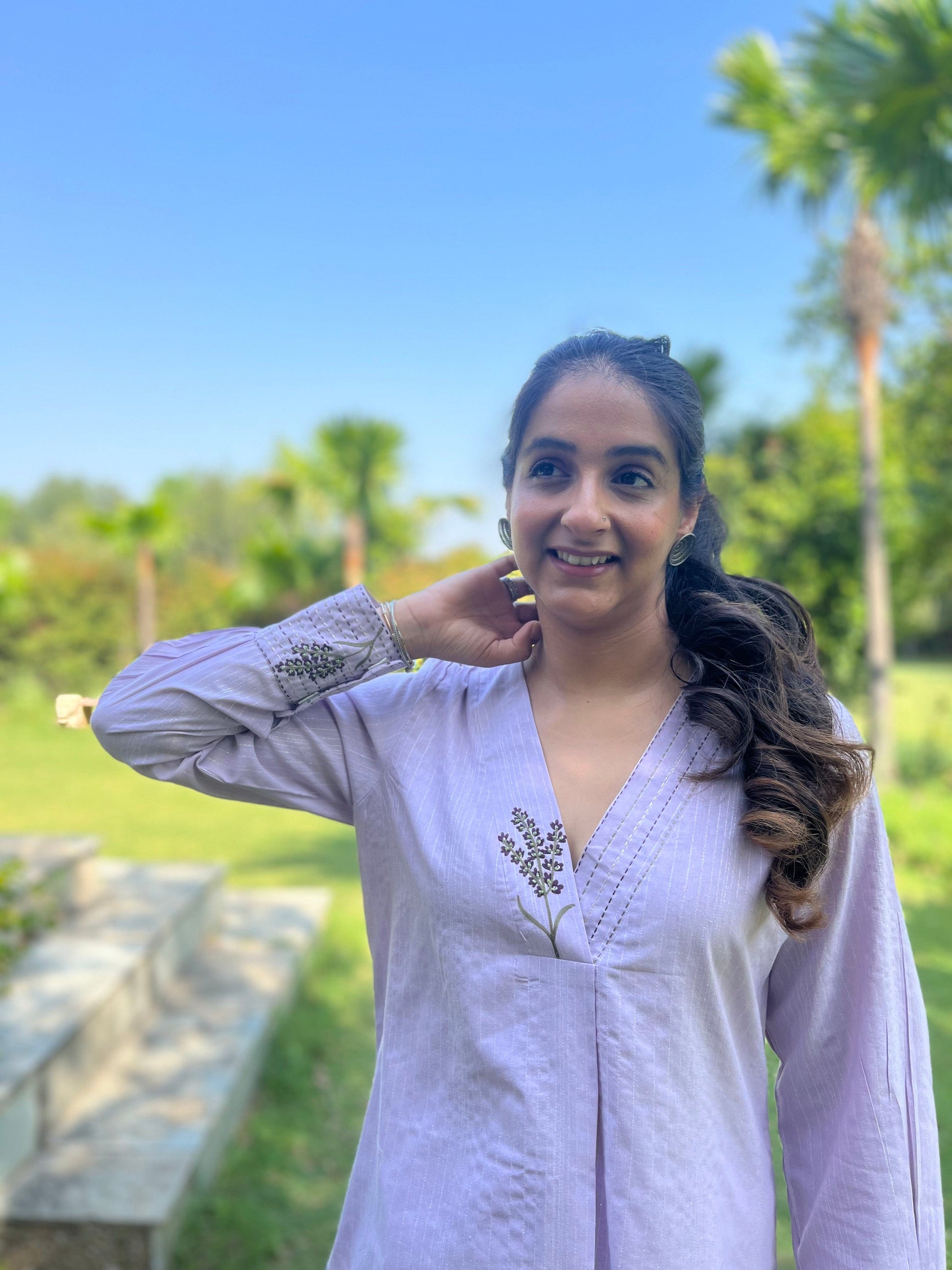 Lilac Cotton Co Ords with Flower Embroidery