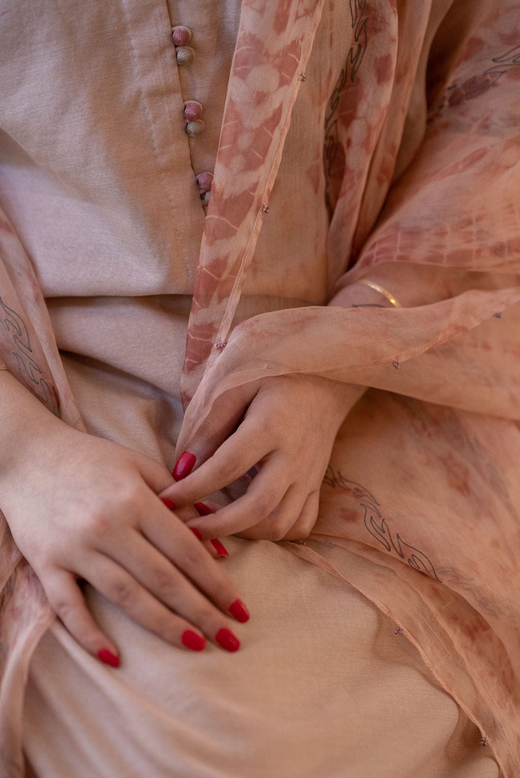Pink Chanderi embroidered shirt with organza hem on sleeves and ghera