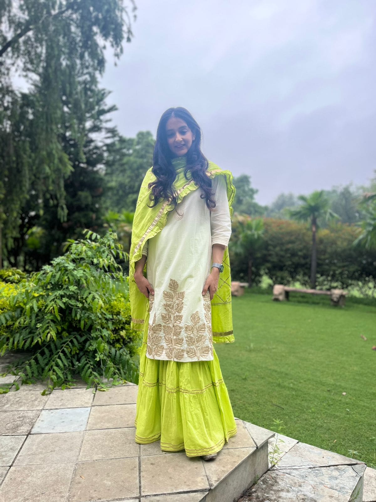 Gotta Embroidery detailings on neck, ghera and sleeves