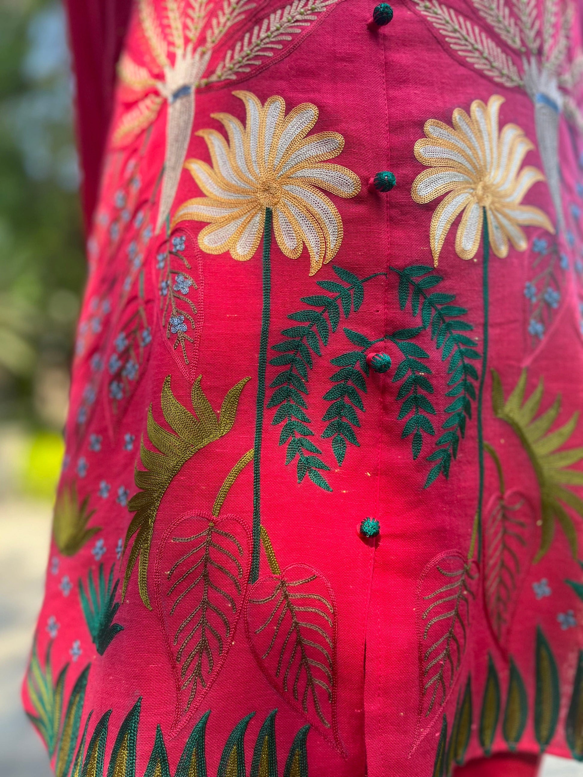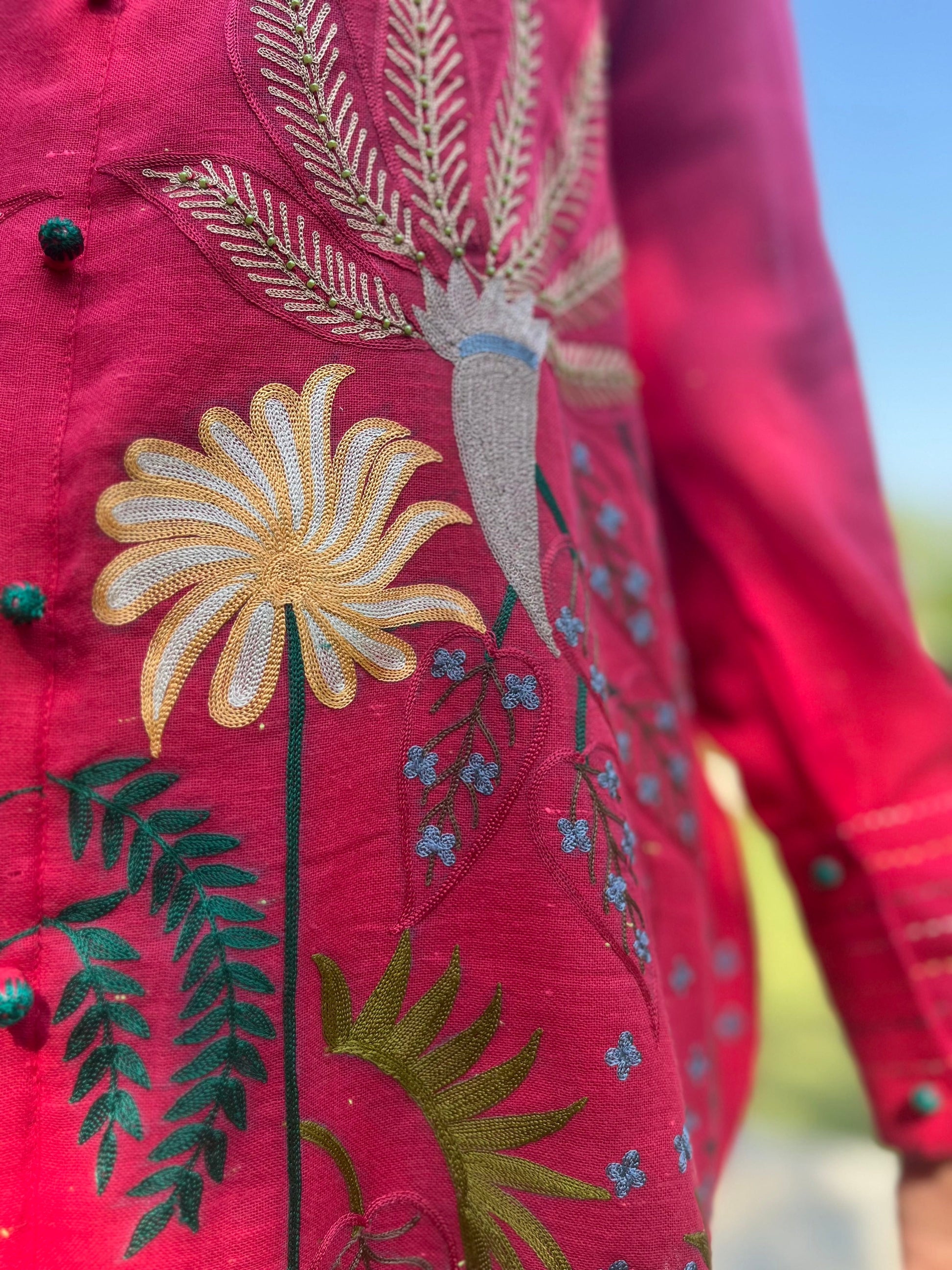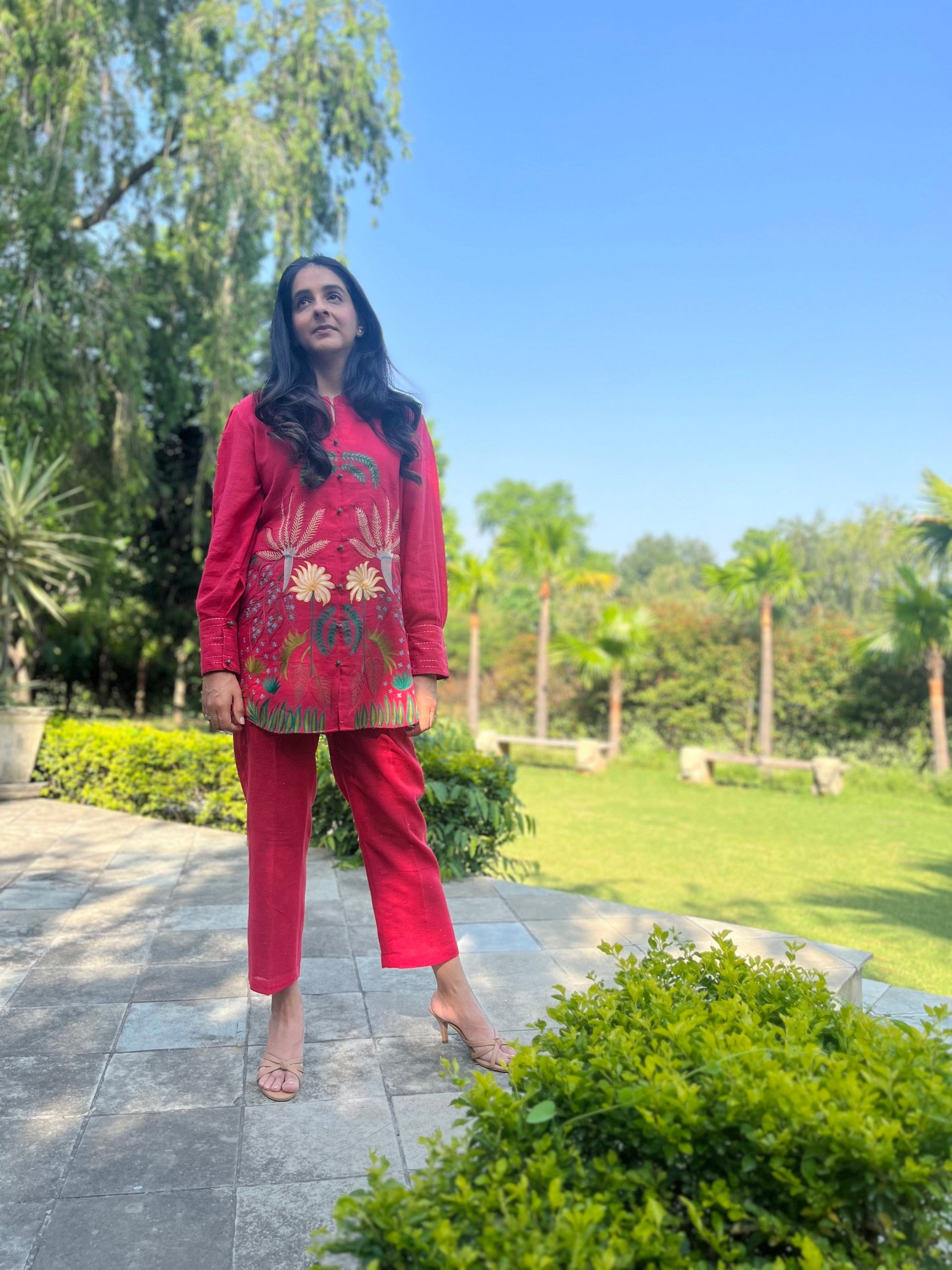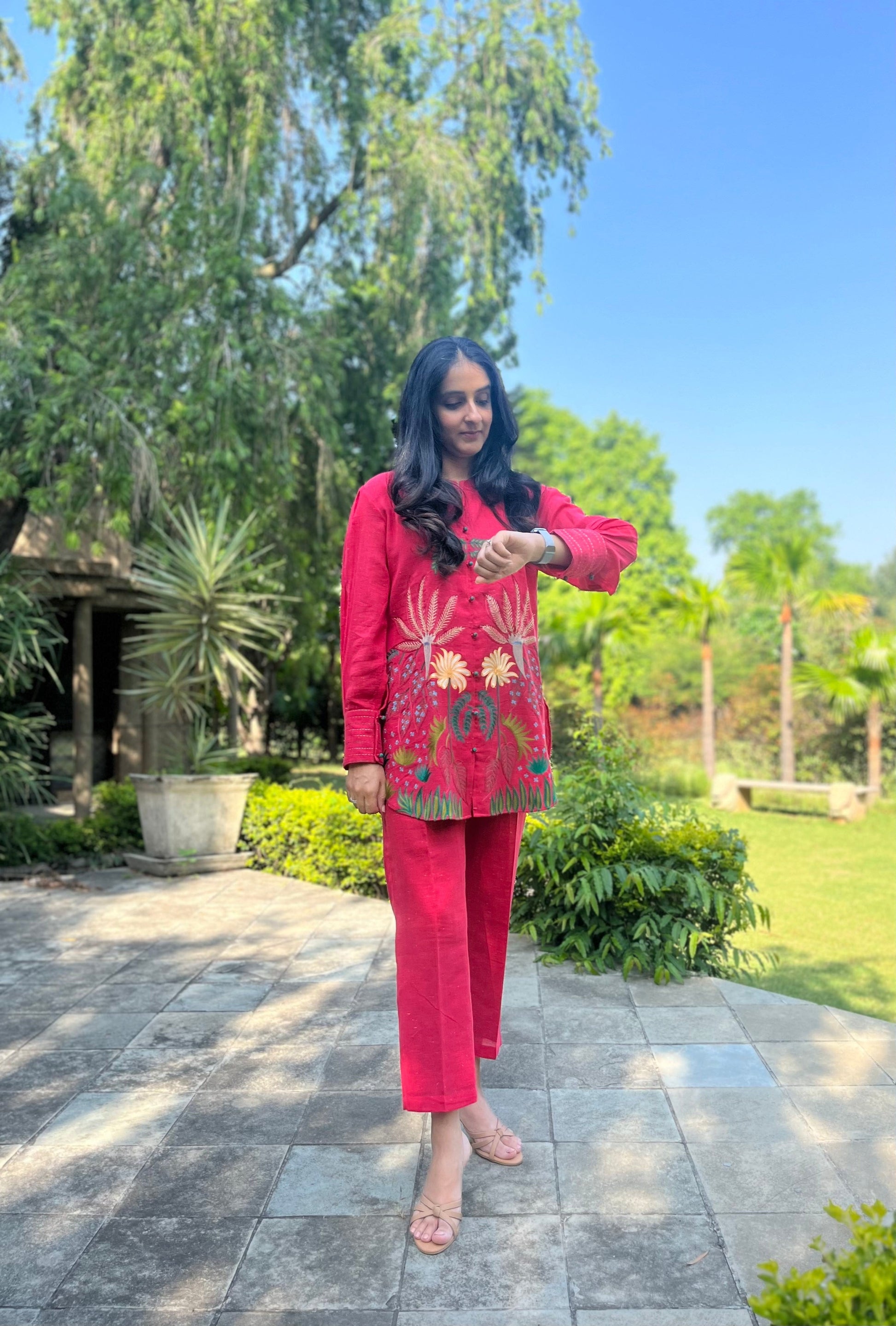 Hot Pink Linen Co Ords Aari Embroidery